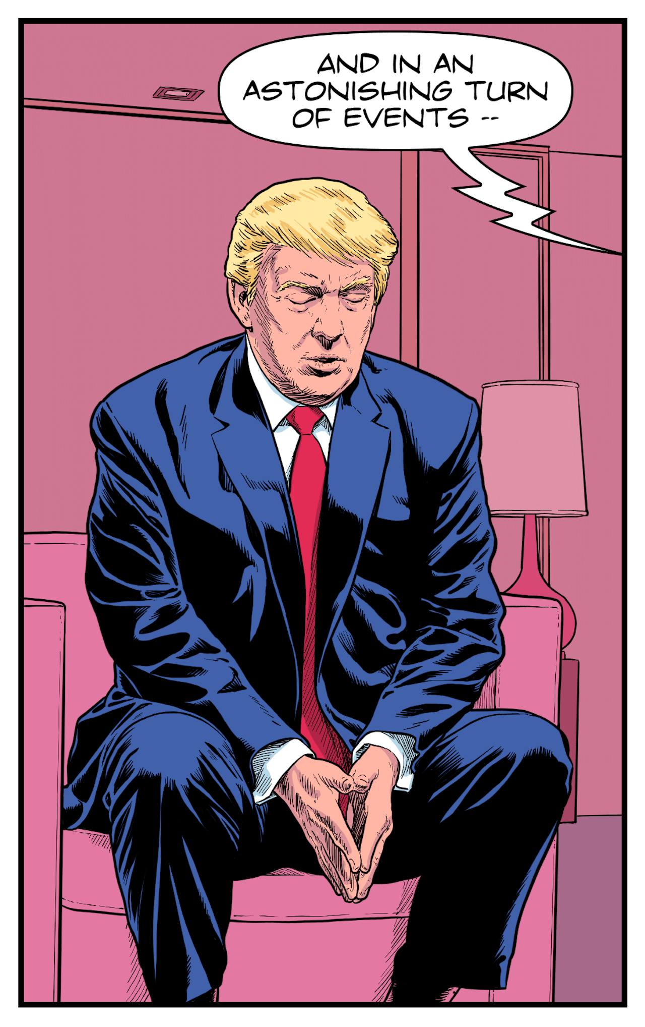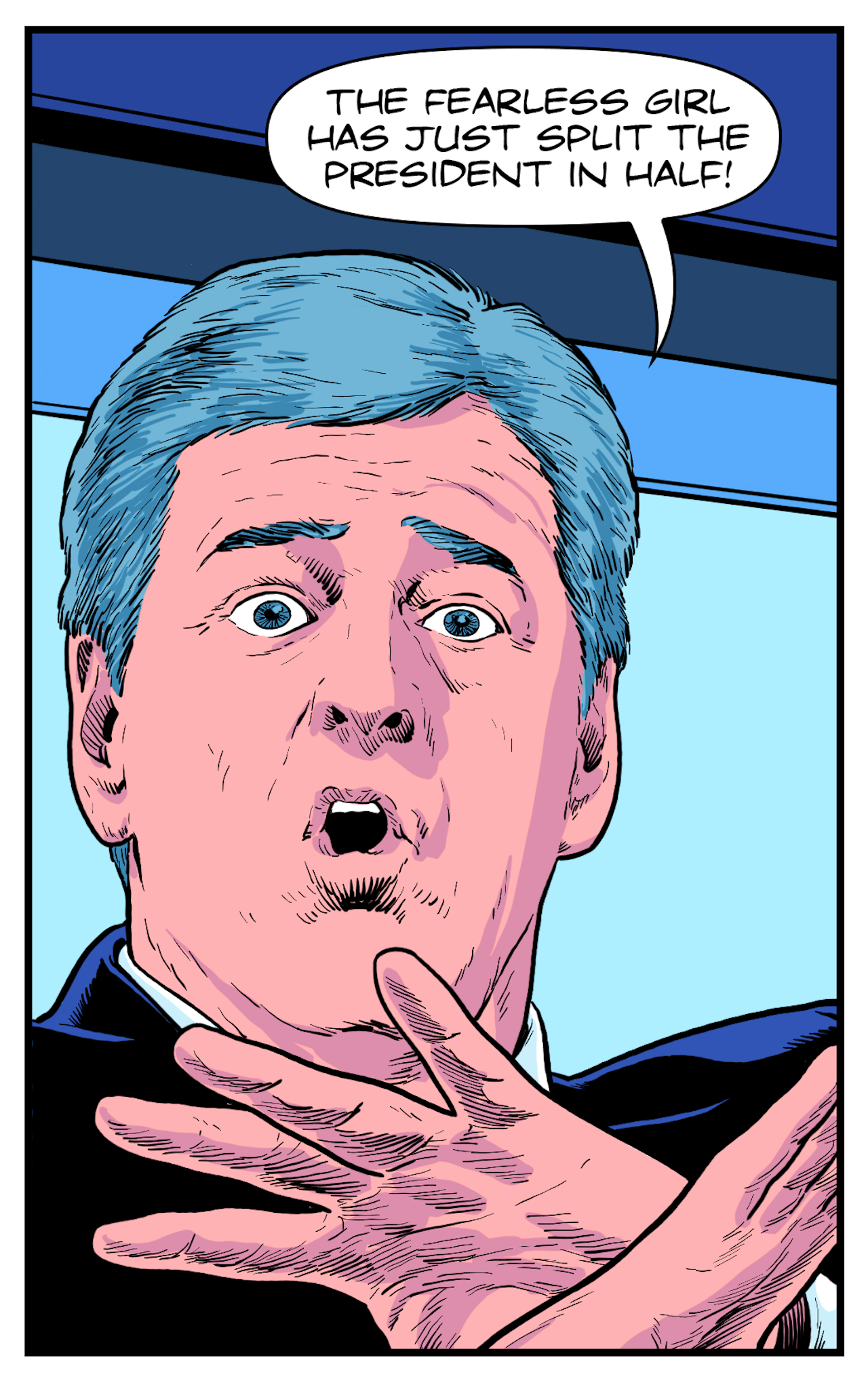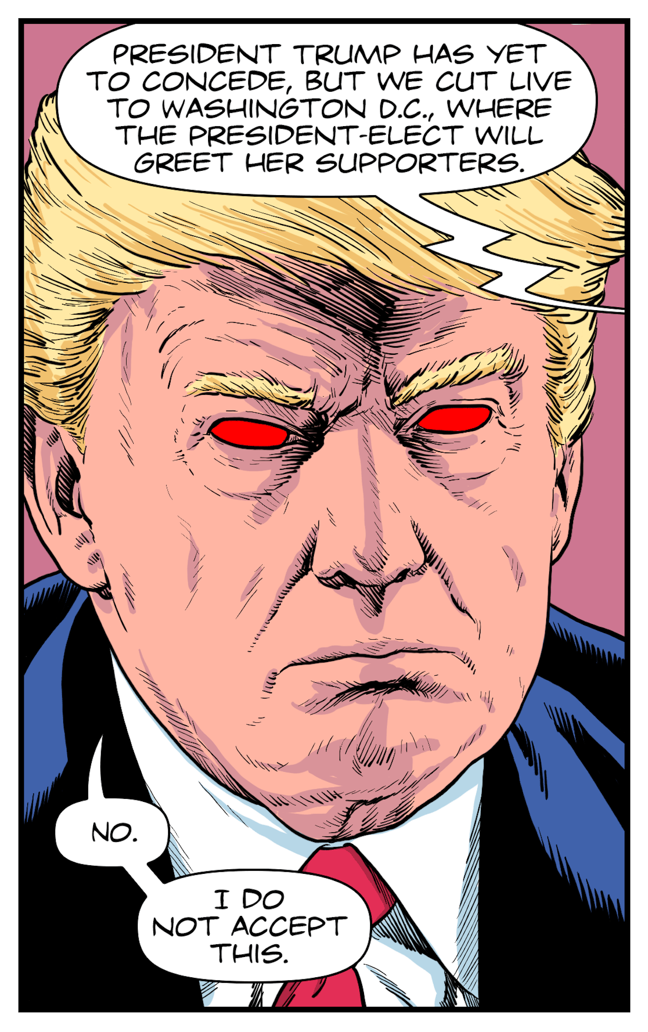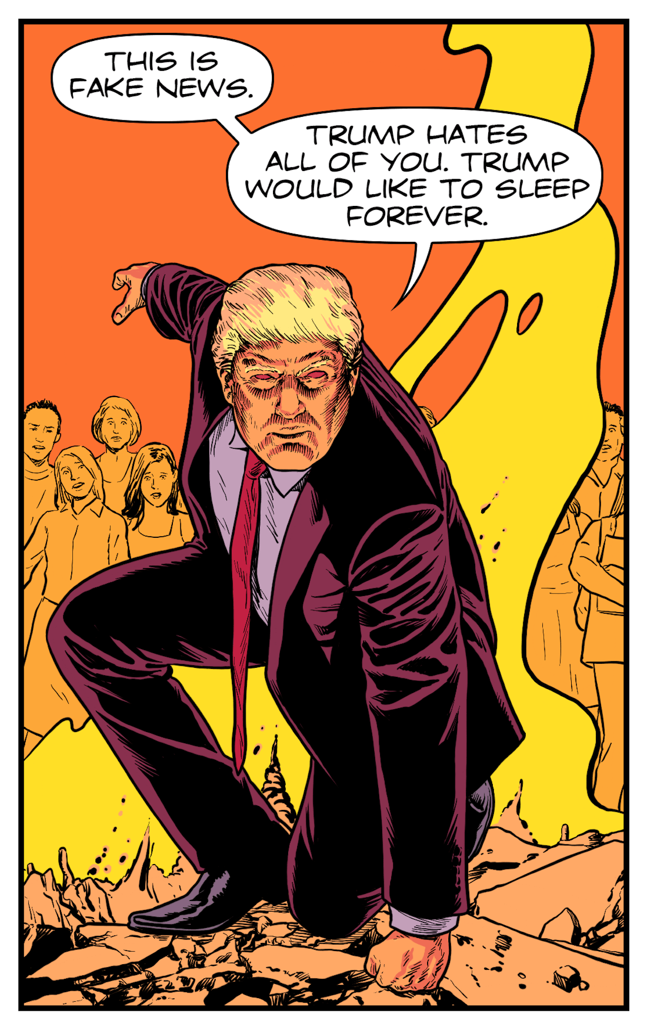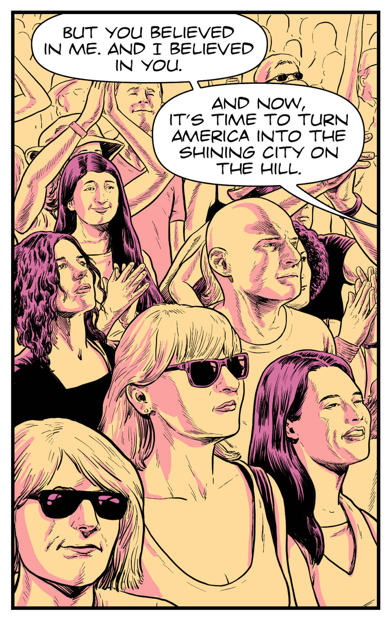 Jeremy Gordon and Reno Maniquis Jul—25—2018 01:30PM EST The votes are tallied, but the winner isn’t so easily declared.Read them allWho watches the men? #1: Trump risesWho watches the men? #2: Hillary's escapeWho watches the men? #3: New electionsWho watches the men? #4: Bernie’s journalWho watches the men? #5: Meet Fearless GirlWho watches the men? #6: Up in the woods, down on my mindWho watches the men? #7: All systems goWho watches the men? #8: An unbelievable turn of eventsWho watches the men? #9: Election Day approachesWho watches the men? #10: End of an empireWho watches the men? #11: Nothing ever endsCultureWho watches the men? #9: Election Day approachesPart nine of a Trump-era comic inspired by ‘Watchmen.’ Read More CultureWho watches the men? #8: An unbelievable turn of eventsPart eight of a Trump-era comic inspired by ‘Watchmen.’ Read More CultureWho watches the men? #7: All systems goPart seven of a Trump-era comic inspired by ‘Watchmen.’ Read More CultureWho watches the men? #6: Up in the woods, down on my mindPart six of a Trump-era comic inspired by ‘Watchmen.’ Read More CultureWho watches the men? #5: Meet Fearless GirlPart five of a Trump-era comic inspired by ‘Watchmen.’ Read More CultureWho watches the men? #4: Bernie’s journalPart four of a Trump-era comic inspired by ‘Watchmen.’ Read More CultureWho watches the men? #3: New electionsPart three of a Trump-era comic inspired by ‘Watchmen.’ Read More Reno Maniquis is an illustrator and graphic artist.