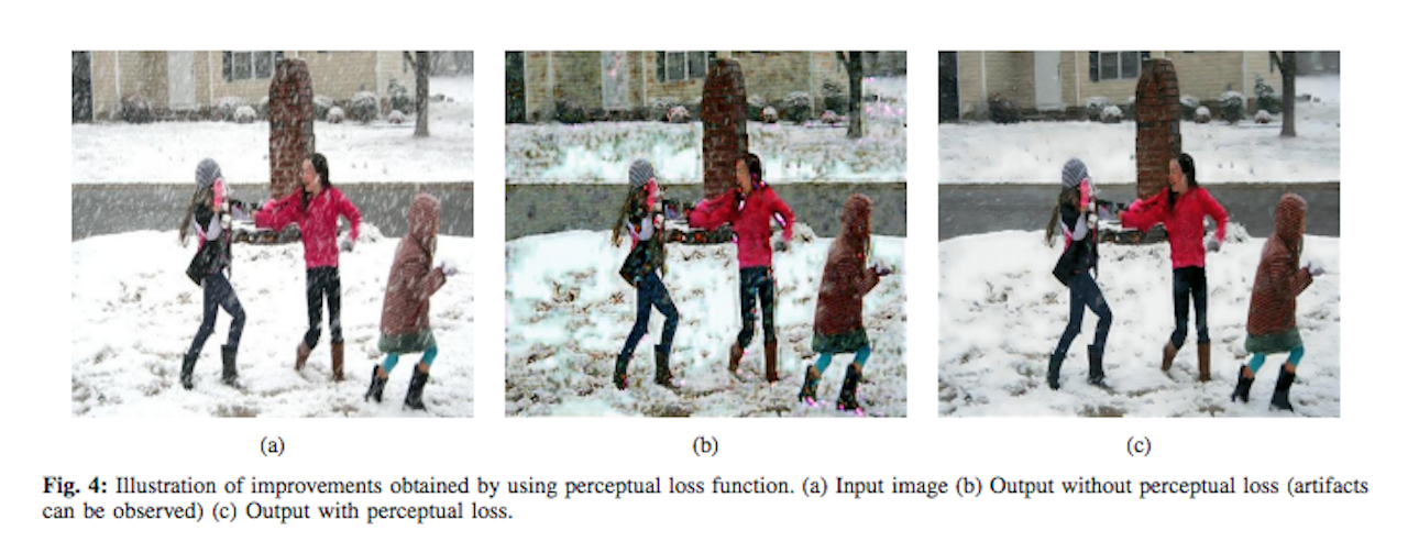 Photographs, as John Berger said, are there to remind us of what we forget. The use of photography has changed, though, and a photograph can be used as a means to an end. The new Rutgers paper says that “severe weather conditions such as rain and snow adversely affect the visual quality of images captured under such conditions thus rendering them useless for further usage and sharing.” An image is “rendered useless” by the presence of rain, says the abstract, and the rain must be cleared up for accuracy. An unmodified picture of a rainy scene is less useful than a picture with the rain artificially removed.