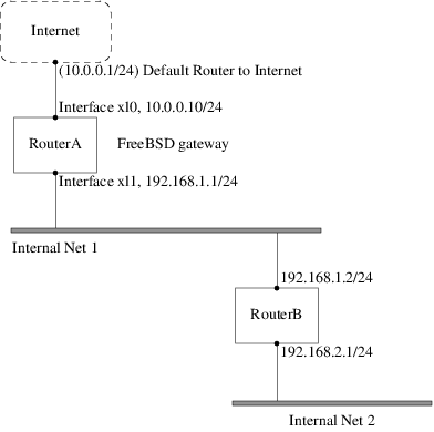 interfaces, FreeBSD must be configured as a router. Internet